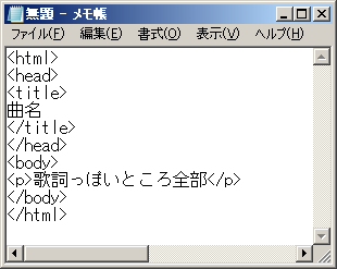 7.「曲名.html」と名前を付けて保存。(曲名.txtとしないこと)